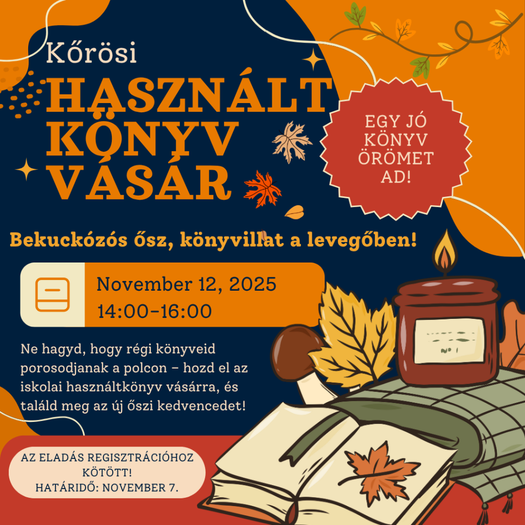 November 12-én megrendezésre kerül a Kőrösi használt gyerekkönyv- és ifjúsági könyvvásár! Ez egy remek alkalom arra, hogy jó áron szerezzünk be új olvasnivalókat az őszi hónapokra, hiszen mi lehet jobb egy hűvös délutánon, mint egy izgalmas könyv társasága? Akik pedig inkább megválnának kinőtt, már elolvasott könyveiktől, most végre lehetőségük nyílik rá, hogy más gyerekek és családok örömét leljék bennük. Várunk mindenkit szeretettel – akár vásárlóként, akár árusítóként!