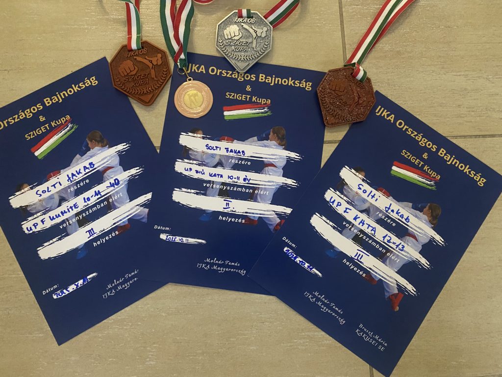 | Solti Jakab | IJKA Országos Bajnokság, Sziget Kupa | Kata versenyszámban 12-13 éves 3.hely | ||