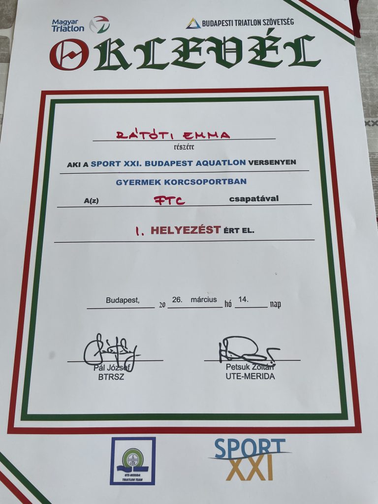 | Rátóti Emma | 6.a | Aquatlon | Sport XXI Aquatlon Budapest | 1.helycsapat |
