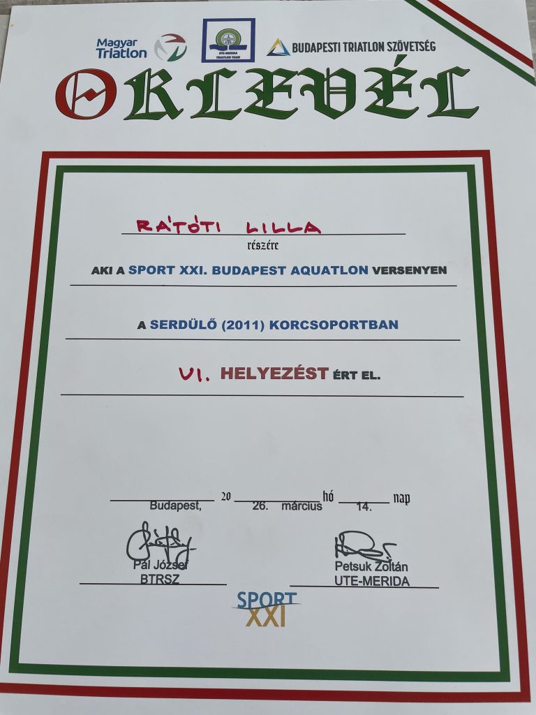 | Rátóti Lilla | 8b | aquatlon | Sport XXI Aquatlon Budapest | egyéni 6.hely |