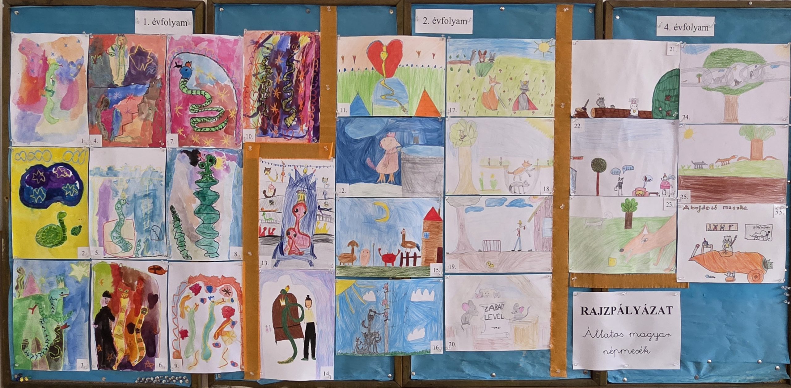 Szeptemberben az alsó tagozatos tanulók számára meghirdettük az „Állatos magyar népmesék” című rajzpályázatot. A felhívás célja az volt, hogy a gyerekek meseolvasás után szabadon engedjék fantáziájukat, és alkotásaikban megjelenítsék a mesék világát.
