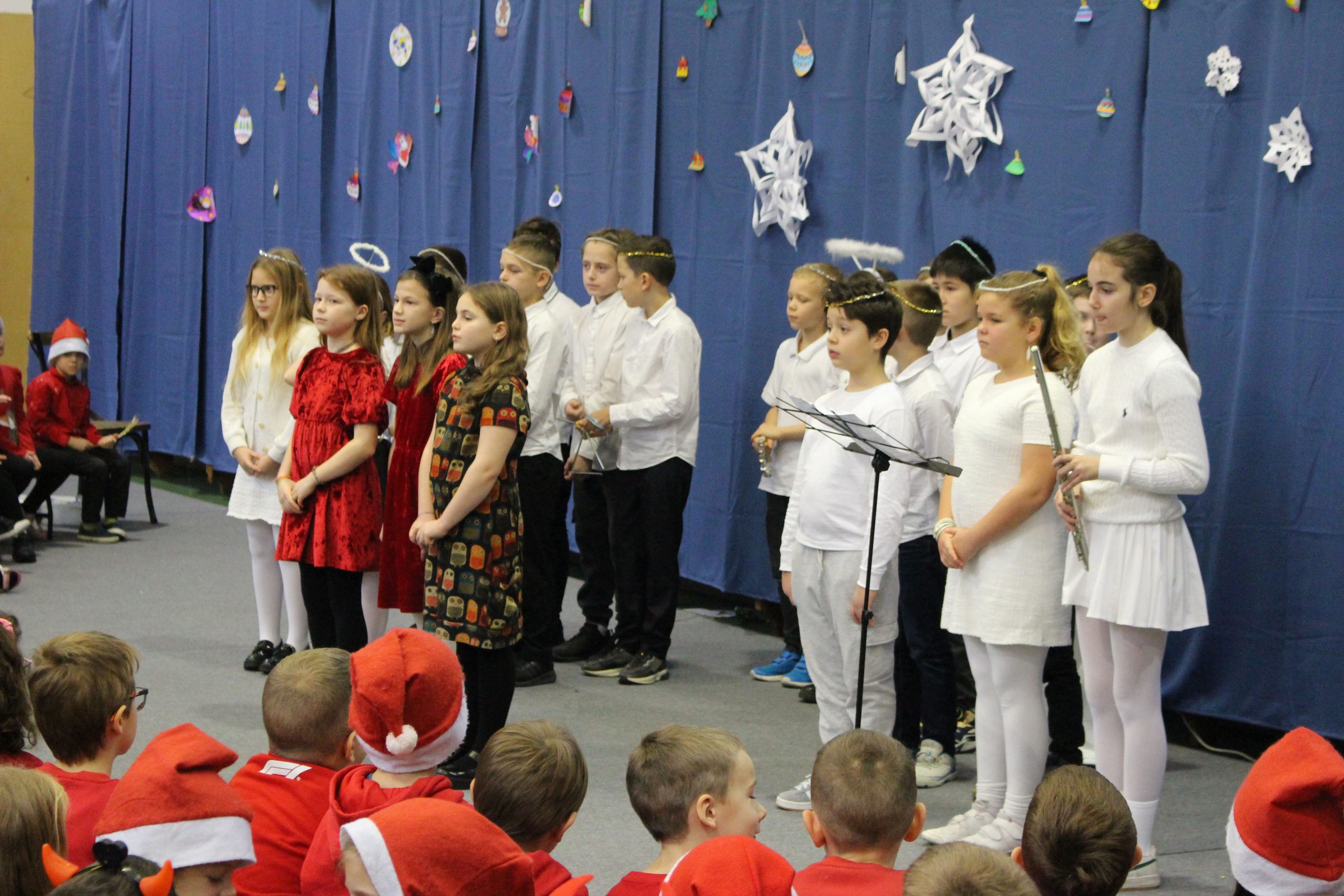 Csütörtök délután az alsós és felsős osztályok közös karácsonyi műsorára került sor. Az 1–4. évfolyam tanulói és az 5. évfolyam diákjai zenés, táncos, énekes és verses produkciókkal lepték meg a szülőket. A karácsonyi dallamok, az ünnepi fények és a gyermeki öröm meghitt hangulatot teremtettek, a pedagógusok gondos felkészítő munkája pedig minden műsorszámban visszaköszönt.