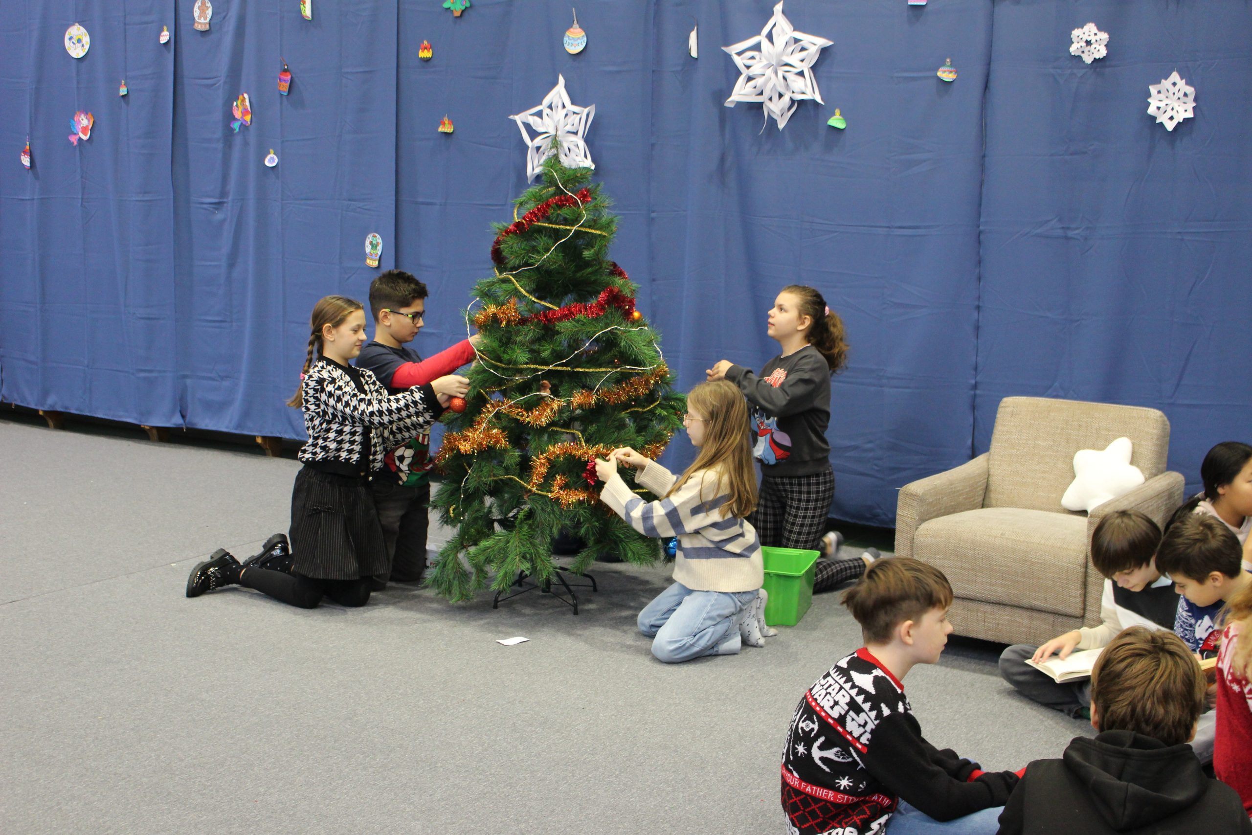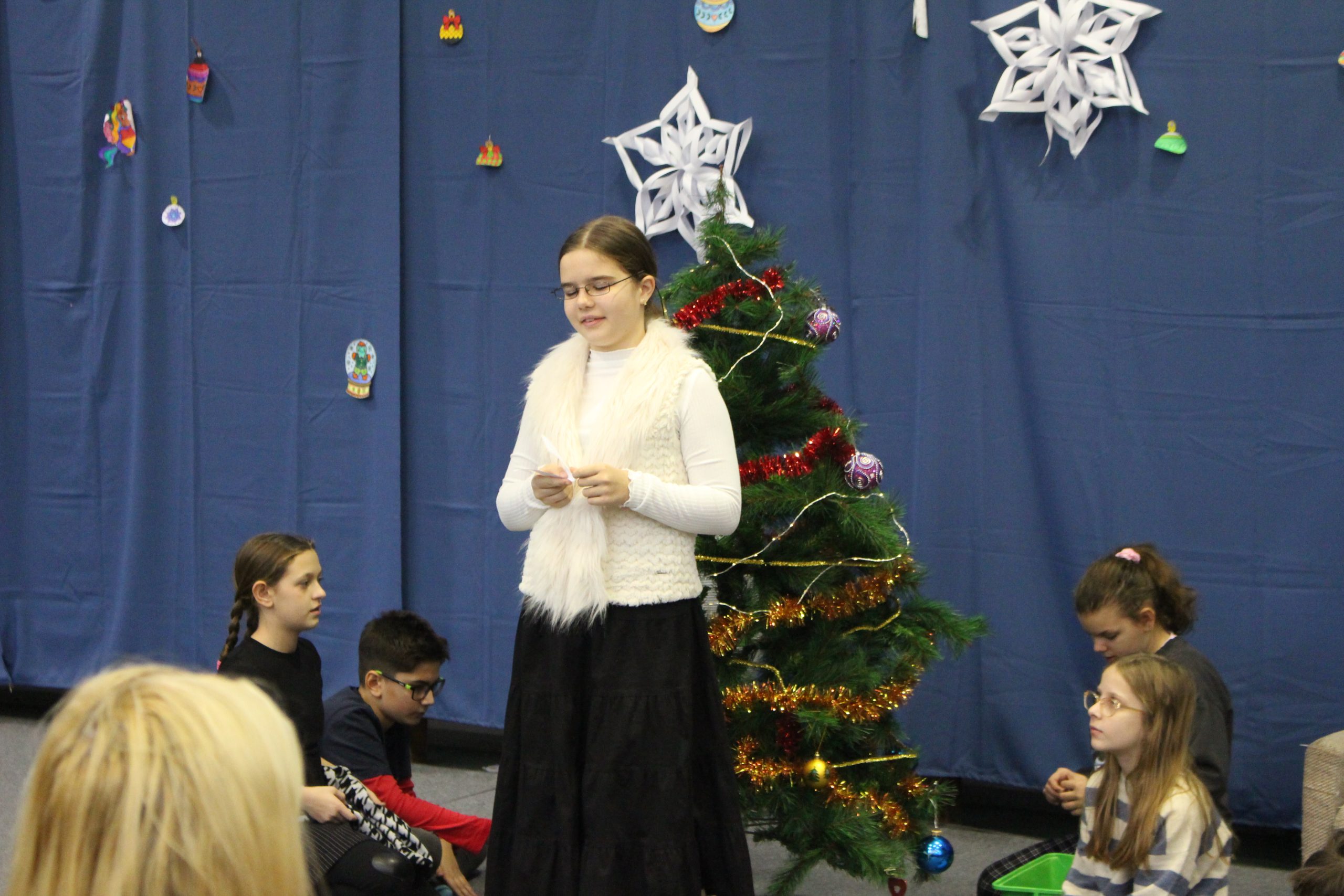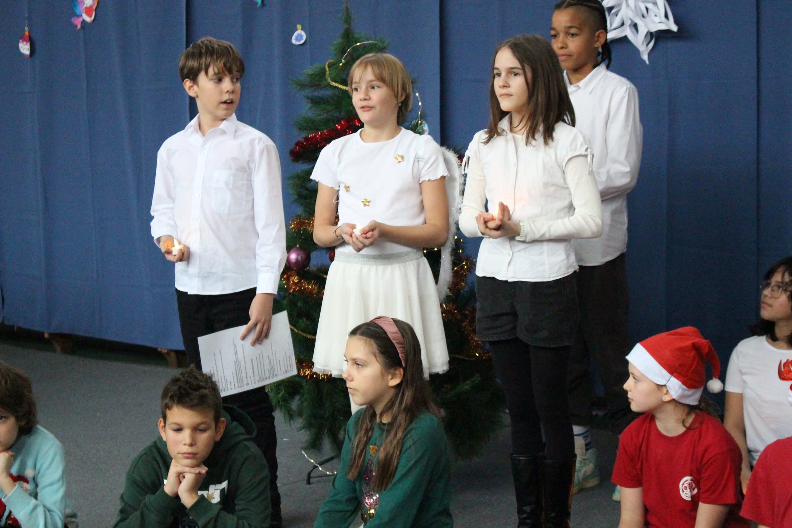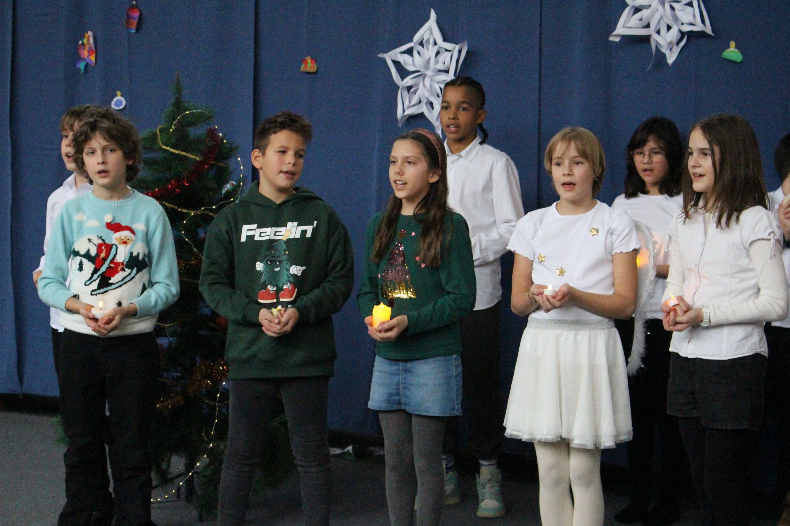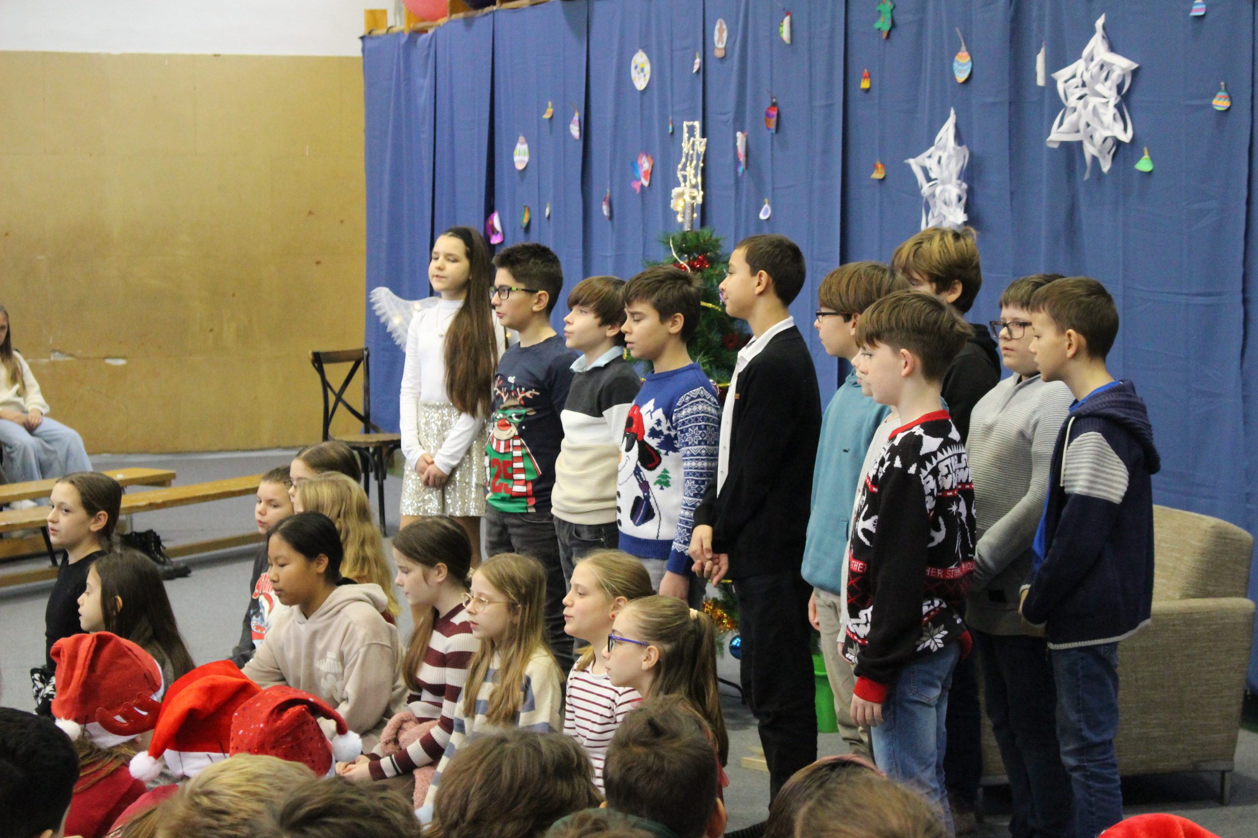 A felső tagozatos, ötödik évfolyamos karácsonyi műsorok méltó lezárását adták az adventi időszaknak. Az 5.a osztály „Karácsonyi kívánság” című előadása szavalatokkal, közös énekekkel és hangszeres játékkal közvetítette a karácsony üzenetét. Az 5.b osztály megható története pedig a figyelemről, az összetartozásról és a család valódi jelentéséről szólt, bensőséges hangulatban, közös énekléssel zárva az előadást.