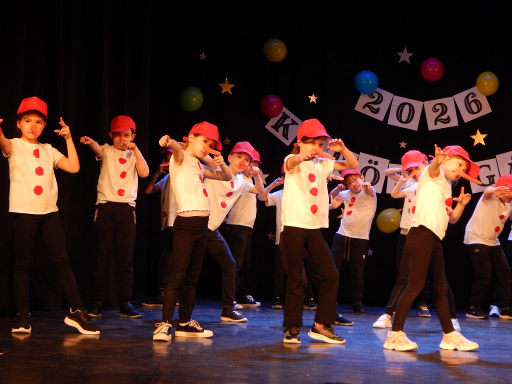 A 4.b osztály lányainak tánca frissességével és lüktető energiájával emelkedett ki, míg Horváth Veronika (7.a) versmondása mély érzelmeket közvetített a közönség felé. A 2.a osztály „Keménykalap és krumpliorr” című cirkuszi bemutatója játékosságával és humorával aratott sikert.