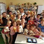 Szívet (kartonpapírból), lelket (vattafelhőből) töltöttünk kedvenceink testébe, pocakjába, majd tompa tű segítségével megtanultuk a varrás alapjait. Végül minden újszülött bocs mellé, kitöltöttünk egy születési anyakönyvi kivonatot és mackós csoportképet is készítettünk.