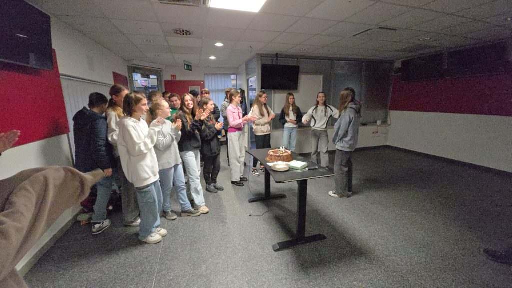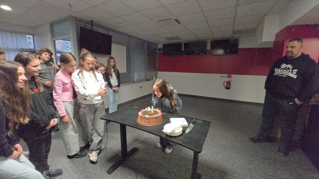A nap azonban nem csupán a modern technika izgalmairól szólt. Éppen ezen a napon ünnepelte Laura a születésnapját, és édesanyja egy titkos meglepetéssel készült. Amíg mi előkészítettük a meglepetés „színpadát”, Laci játékosan Laura fejére adta a VR-szemüveget, így ő teljes beleéléssel játszott tovább, mit sem sejtve arról, hogy odakint már minden készen áll. Amikor felcsendült Halász Judit ikonikus dala, az „Ez a nap más, mint a többi”, óvatosan levettük róla a szemüveget. A pillanat, amikor Laura meglátta a tortát és a mosolygó társait, mindenkit megérintett – őszinte, tiszta öröm áradt szét a teremben.
